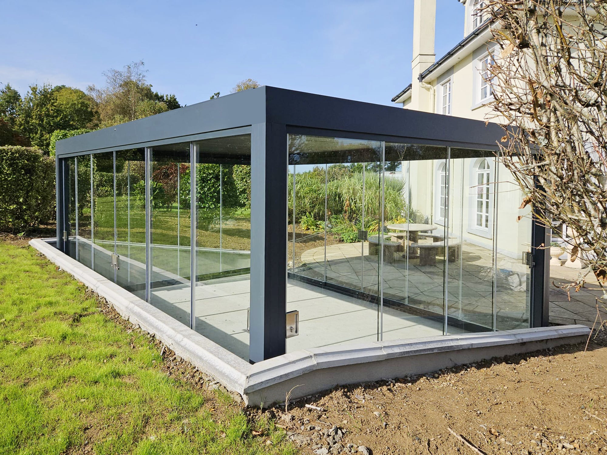 - Ajout d’options : éclairage LED, rideaux latéraux, chauffage, vitres coulissantes… pour une pergola évolutive et confortable toute l’année