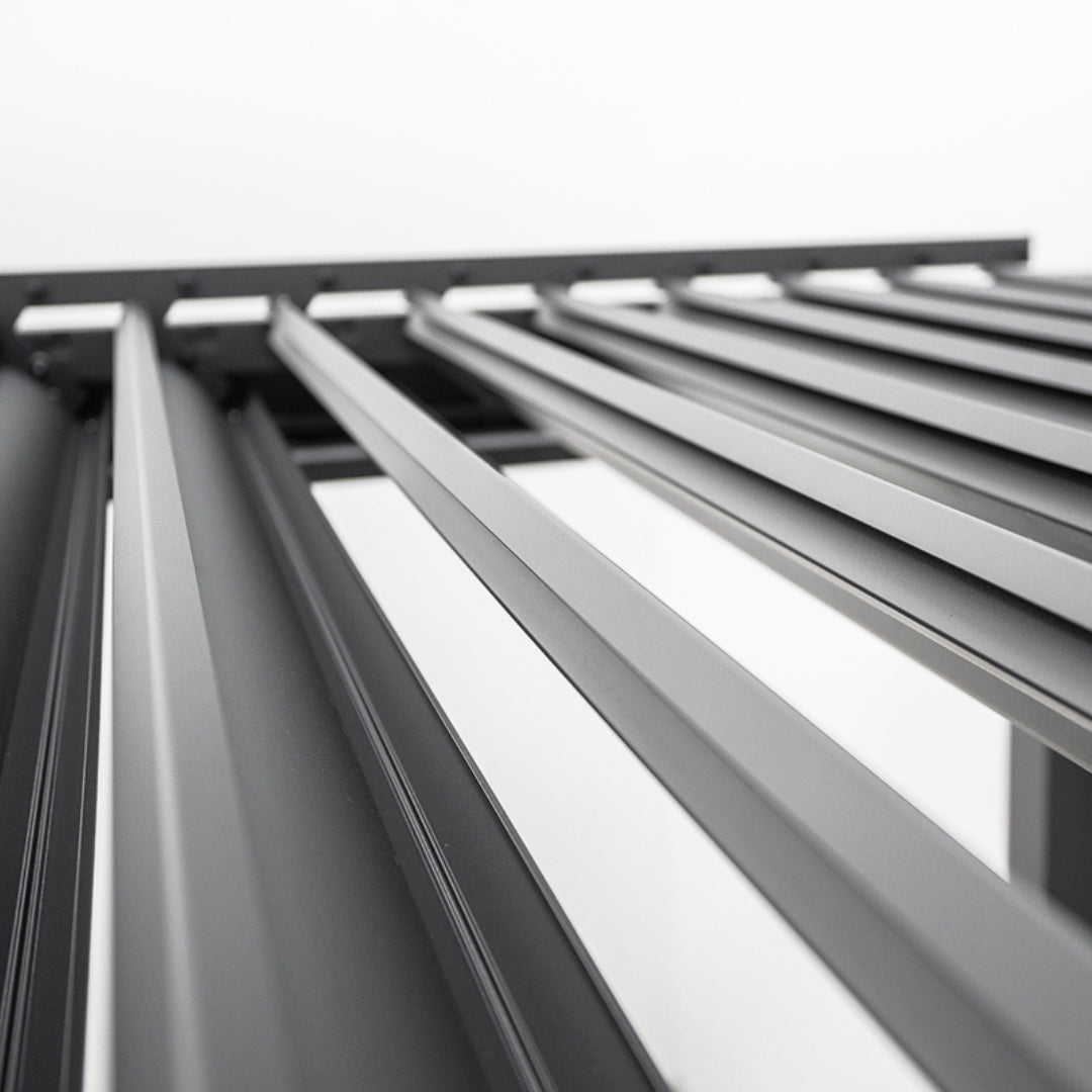 Contrairement à une pergola classique avec toit fixe, la pergola bioclimatique ajuste ses lames selon l’ensoleillement ou la pluie. Cela permet de mieux contrôler la température et d’optimiser le confort en extérieur.